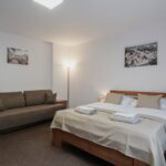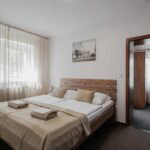 Popis: apartmán má dvě oddělené ložnice s manželskou postelí. V jedné z ložnic je rozkládací pohovkou, která může posloužit jako další lůžko pro 2 osoby. Apartmán je pak možné využít až pro 6 osob (nutné doobjednat). V apartmánu dále naleznete vlastní sociální zařízení, rohovou vanu, kosmetickou výbavu, Wi-Fi připojení, vysoušeč vlasů a další dle ikonek v odstavci Vybavenost.