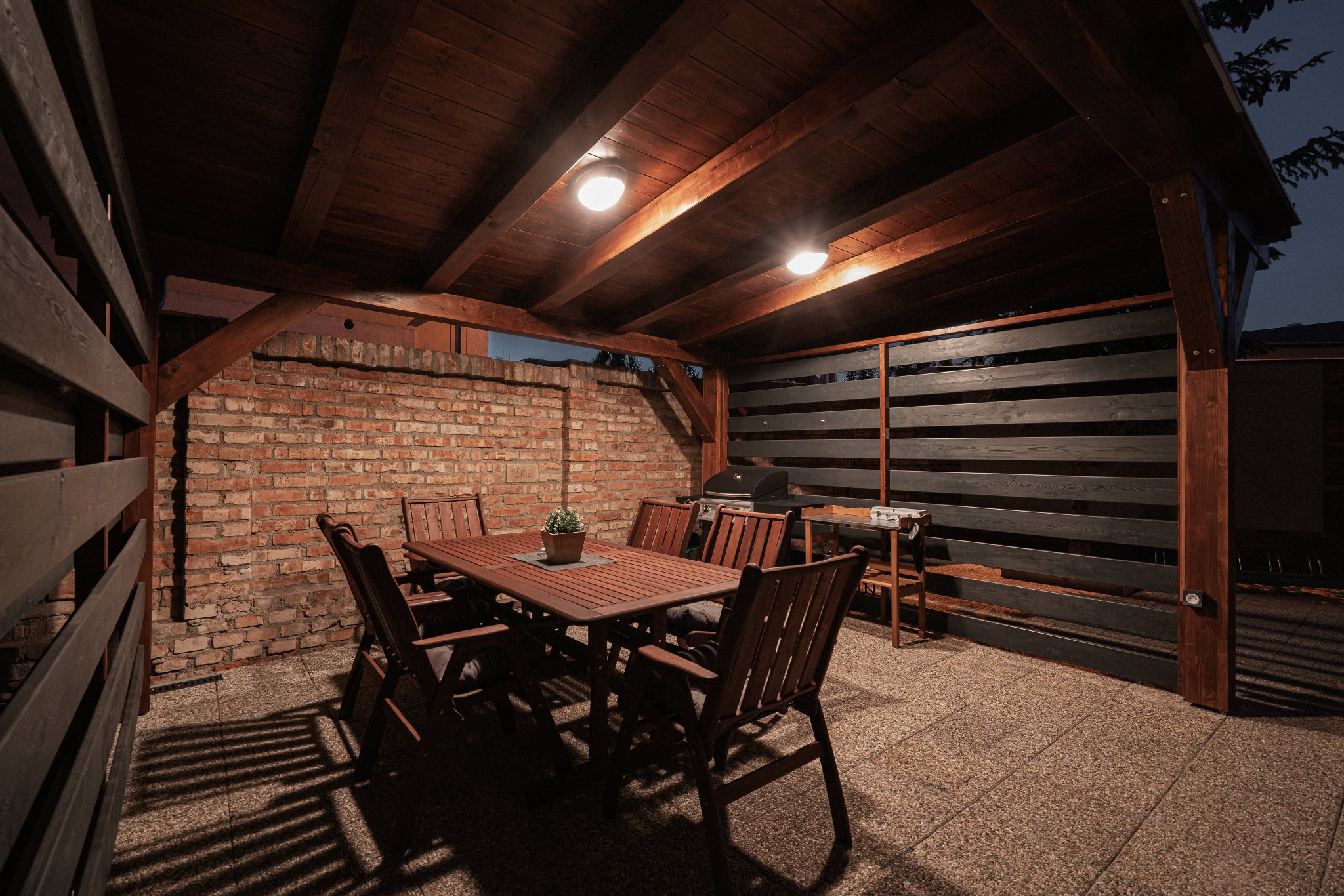 Co jinde nenajdete: před apartmánem je k dispozici soukromé posezení pod pergolou. Součástí posezení je i gril.